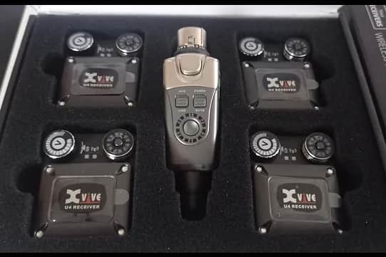 Das IN EAR MONITOR WIRELESS SYSTEM besteht aus einem Sender und mehreren Empfängern. Die Empfänger tragen die Musiker am Körper und sie sind mit Kopfhörer verbunden. Über den Sender besteht die Möglichkeit den Musikern Backing Tracks zuzuspielen, die sie zeitgleich empfangen. Das vorhandene System ermöglicht das Senden von drei Backing Tracks (BTr1,2,3) an 12 Musiker. Dabei empfangen die Bläser BTr1, die Bassiten BTr2 und die beiden Schlagzeuger BTr3. Das System macht es möglich, das Problem der Latenz zu umgehen und gleichzeitig über große Distanzen zu spielen.